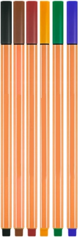 Satz von 6 farbigen LEAN-Linern mit einer Breite von 0,4 mm für präzises Schreiben und Zeichnen. Ideal für Schule und Büro.