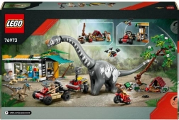 Enthalten sind die Minifiguren Zora Bennett, Martin Krebs und Dr. Henry Loomis, eine Station mit Ladebereich und Zubehör, eine Box mit Spritzen, ein Camp mit Zubehör und Palmen. Das Set lässt sich mit weiteren LEGO Jurassic World Sets kombinieren – für noch größere Abenteuer.
