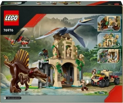 Erleben Sie filmreife Action im Dschungel: Der antike Tempel mit Wasserfall verbirgt ein Nest mit Eiern, geheime Durchgänge und eine per Kette auslösbare Falle. Der bewegliche Spinosaurus (Beine, Vordergliedmaßen, Schwanz, Kopf und Kiefer) und der majestätische Quetzalcoatlus (Flügel und Kiefer) sorgen für realistische Verfolgungen und Rettungen.