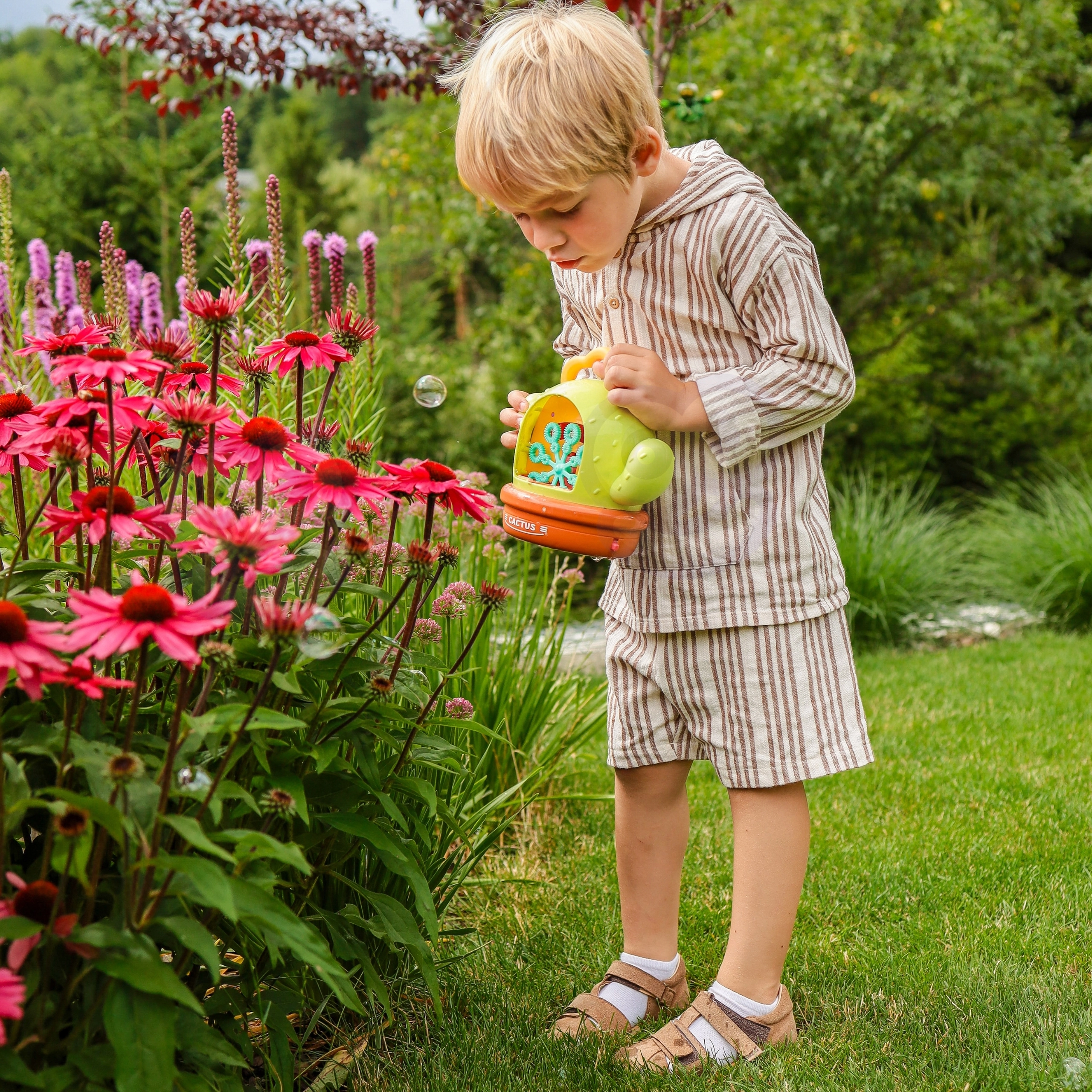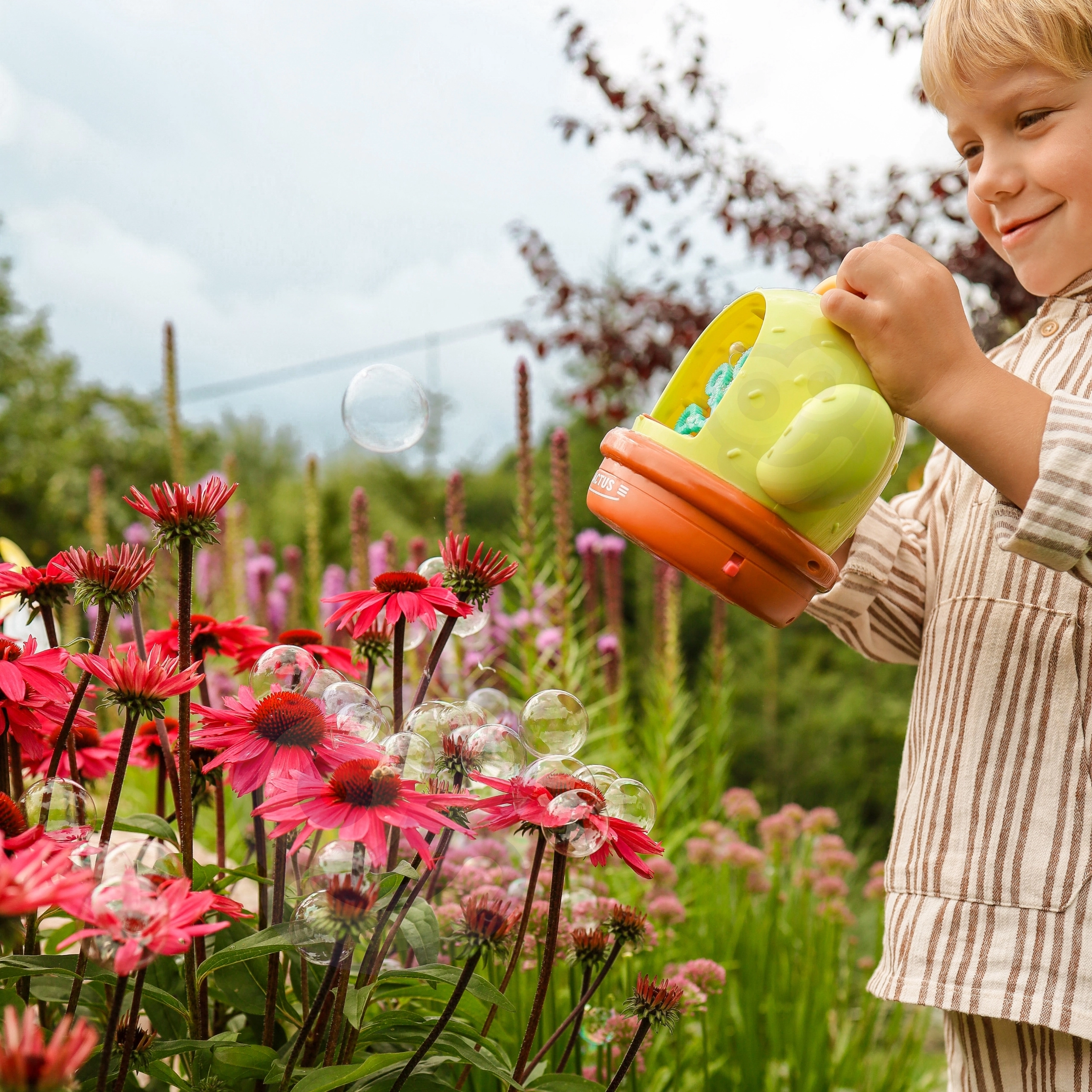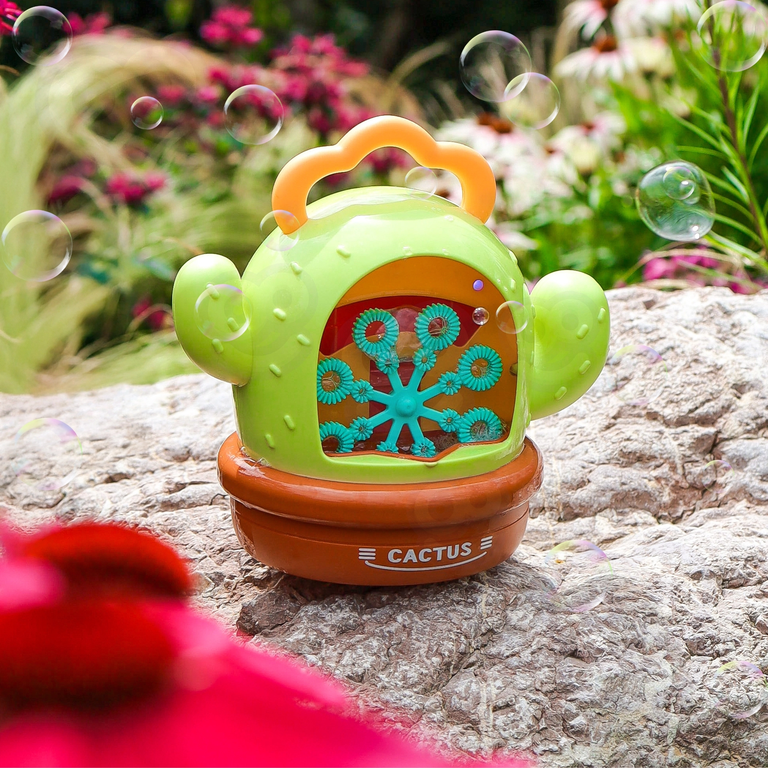 Die elektrische Seifenblasenmaschine in Kaktusform macht jeden Nachmittag zu einer magischen Show. Einfach Lösung einfüllen, Knopf drücken und sich von einer Flut glitzernder Seifenblasen verzaubern lassen – geliebt von Kindern und Erwachsenen. Die hochwertige Verarbeitung und das sichere Design garantieren unbeschwertes Spielen drinnen und draußen.