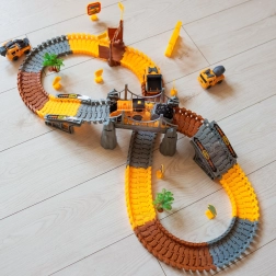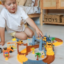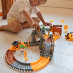Dieses große Konstruktionsset verbindet die Welt der Eisenbahnen und Rennstrecken in einem unterhaltsamen Paket. Dank der elastischen, ineinander einklickbaren Teile erstellt das Kind im Handumdrehen Geraden, Kurven, Auffahrten und Brückenabschnitte. Für eine realistische Atmosphäre sorgen Baumaschinen, Tore, Schilder und weitere Dekorationen, die Vorstellungskraft und selbstständiges Spielen anregen.