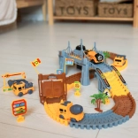 Enthalten ist eine angetriebene Lokomotive zum Transport der „Ladung“, kleine Fahrzeuge für die Arbeiten auf der Baustelle sowie ein umfangreiches Set an Zubehör. Der Aufbau ist intuitiv und stabil, sodass Kinder die Strecke immer wieder umbauen und neue Varianten ausprobieren können. Batterien sind im Lieferumfang, der Spaß kann sofort beginnen.