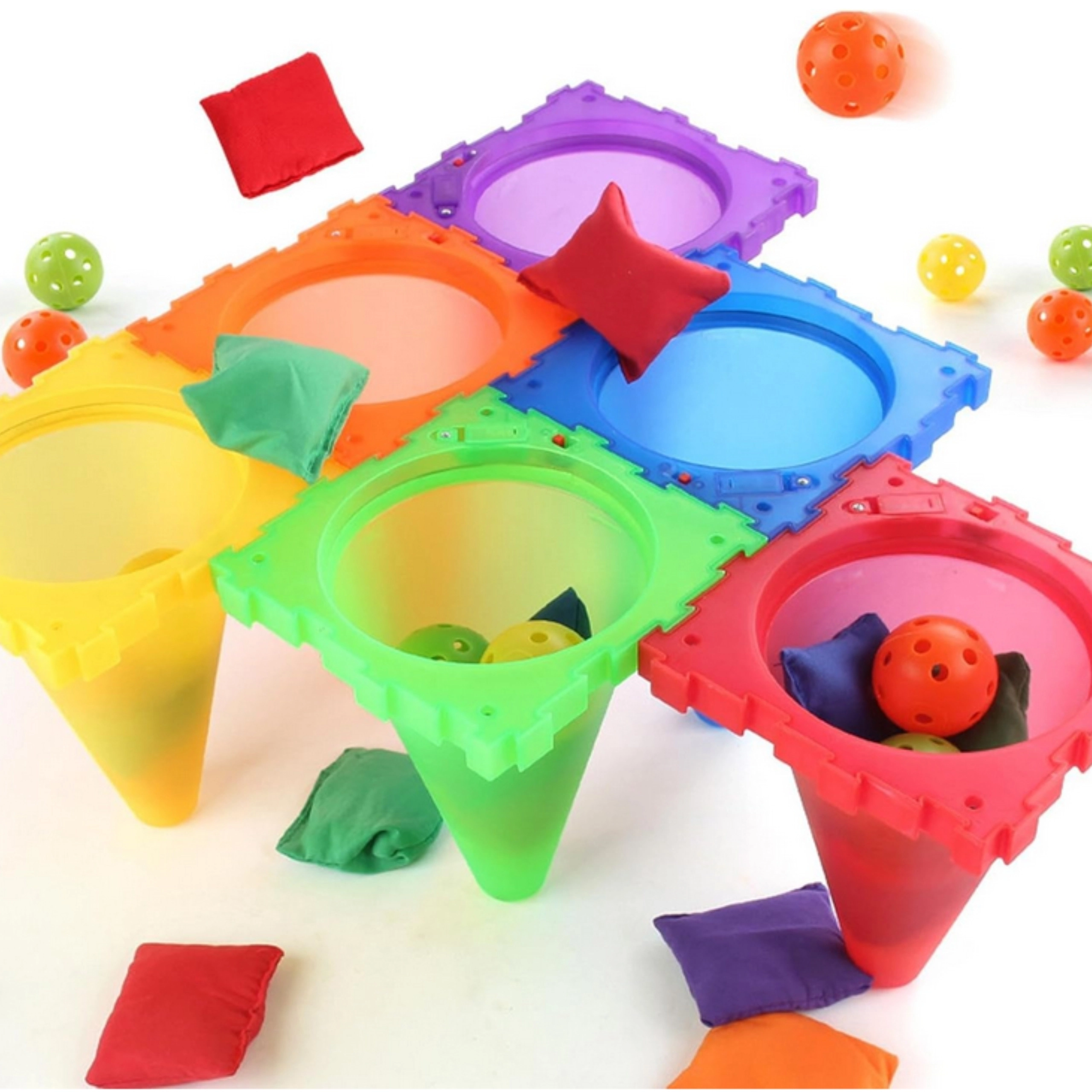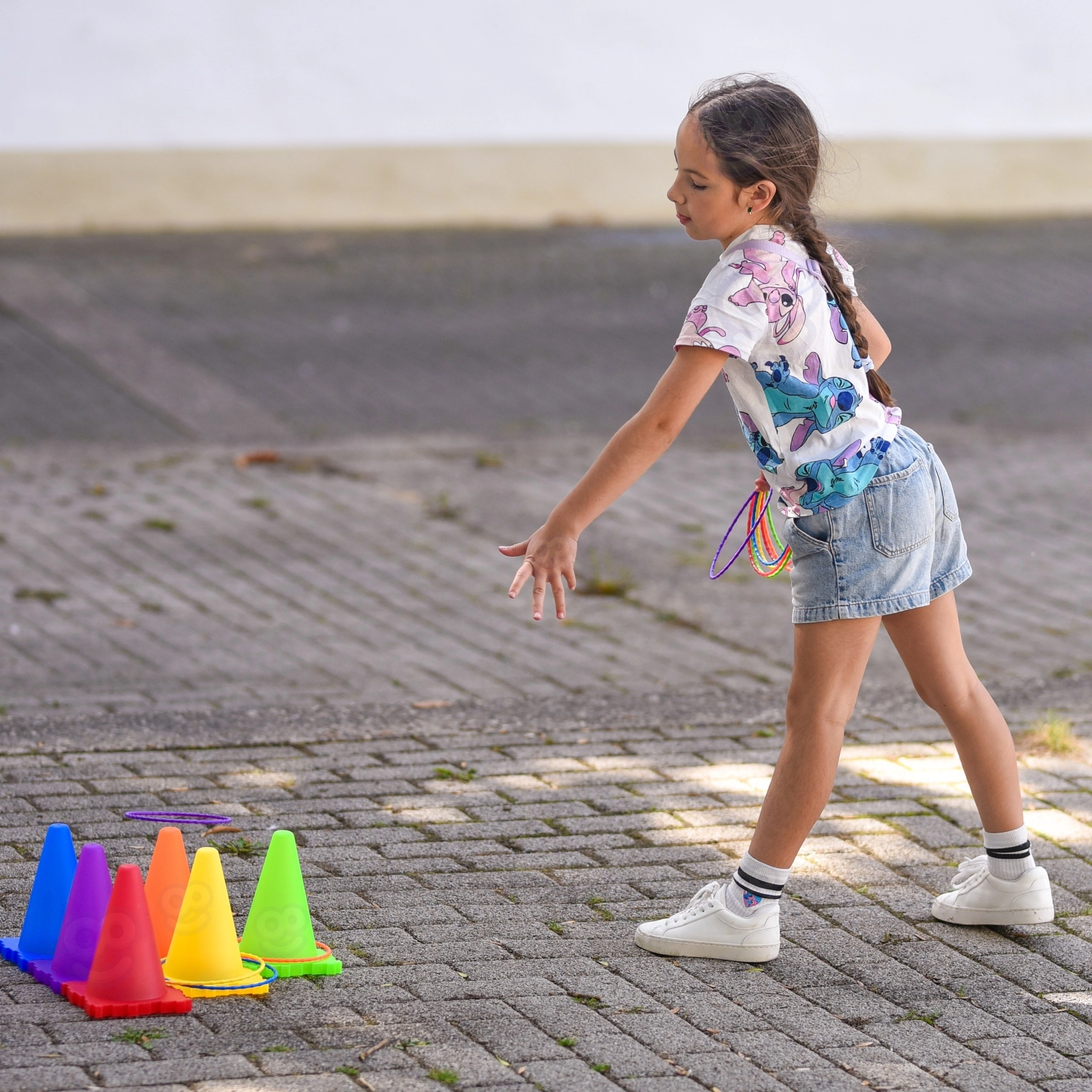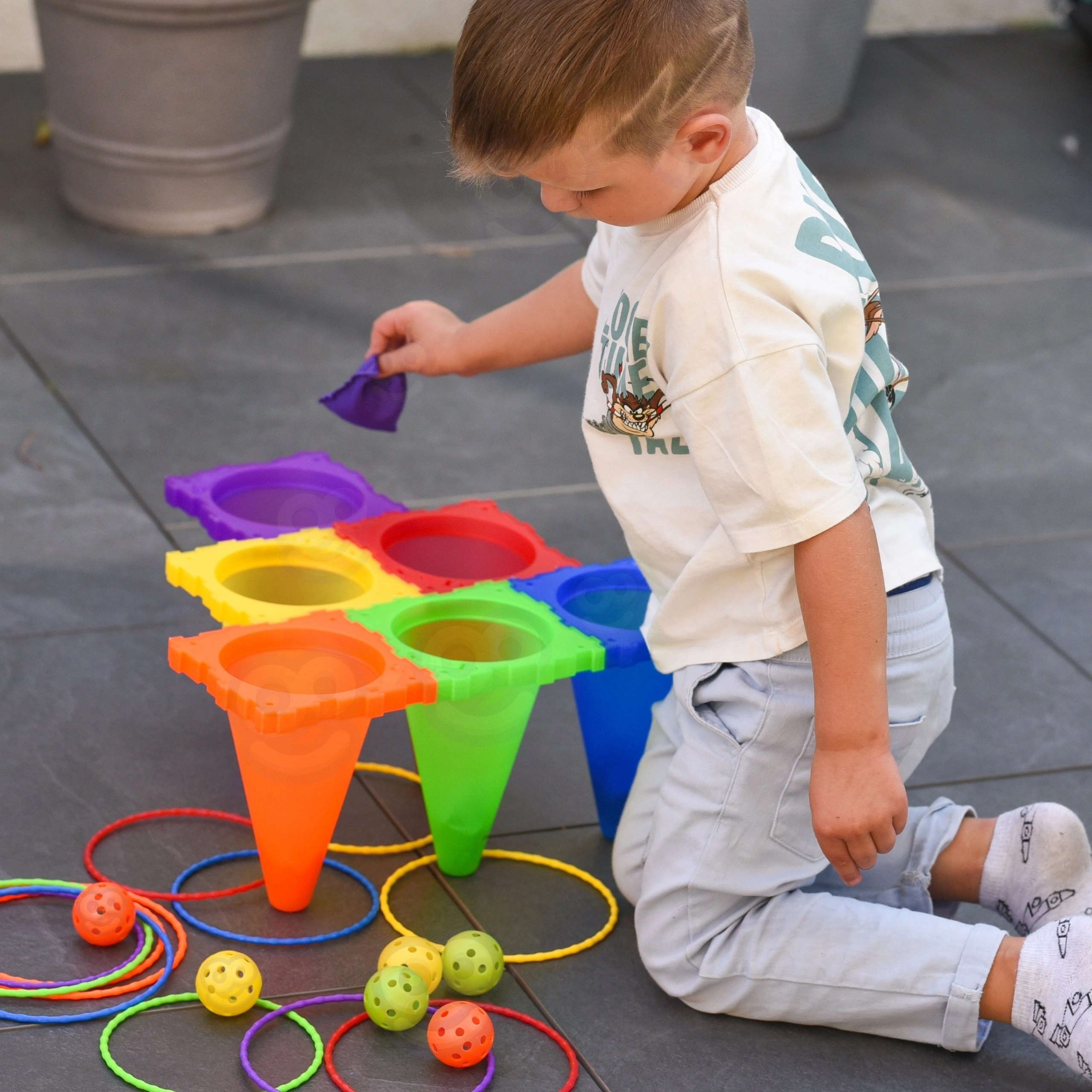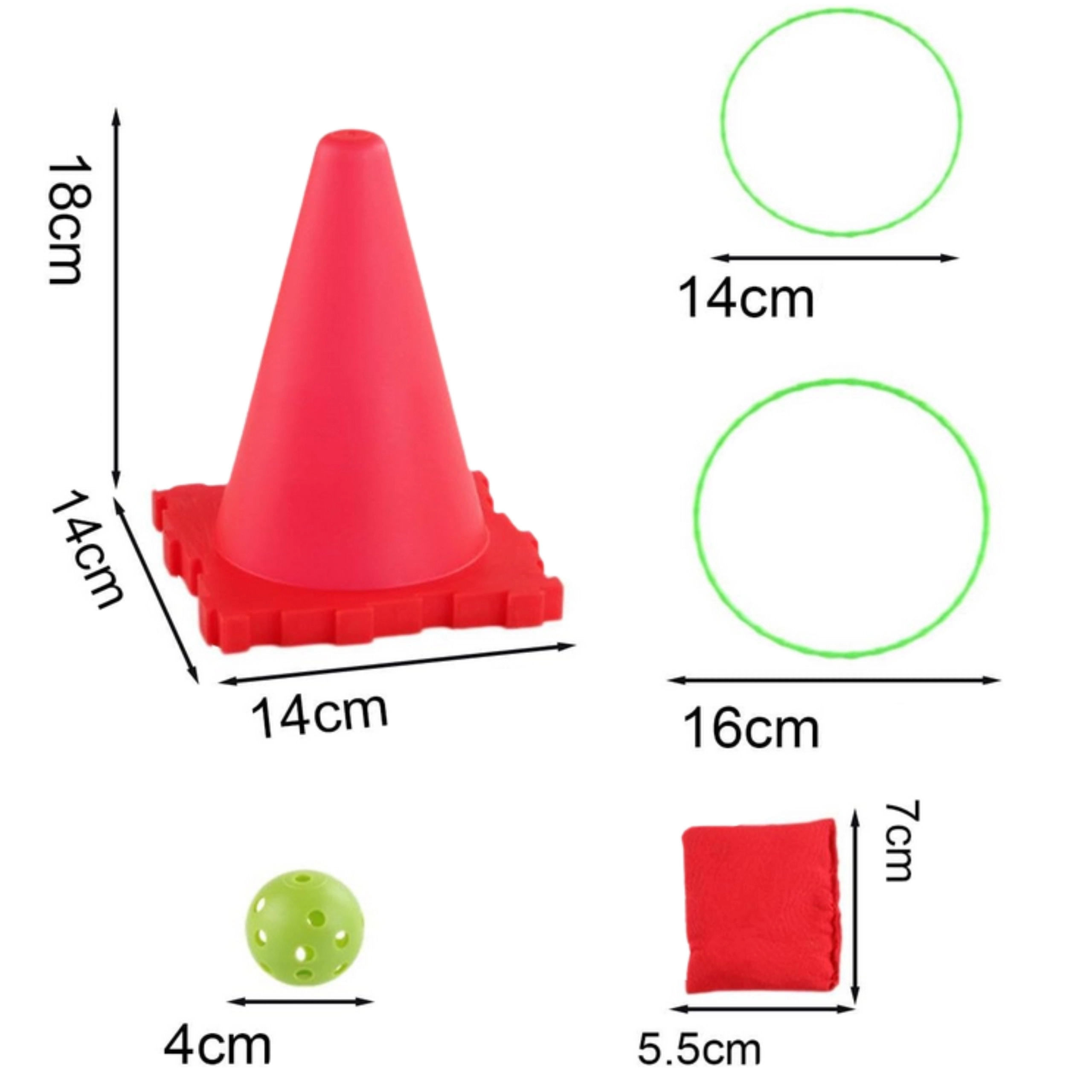 Kombinieren Sie Ringwurf, Säckchenwurf und Ballwurf in einem Set und variieren Sie Regeln und Schwierigkeitsgrad ganz einfach. Ideal für Wettkämpfe, Zieltraining und Teamarbeit.
