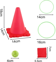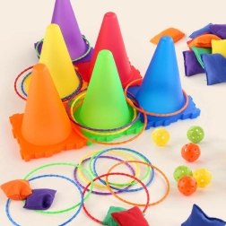 • 3 Spiele in 1: Bälle in Kegel, Zielwurf mit Säckchen, Ringwurf