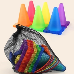 • Einfache Aufbewahrung: stapelbare Kegel und Tragenetz