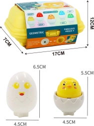 Jedes Ei besteht aus zwei Teilen: der oberen Schale und der unteren Schale, die mit der Figur des Küken verbunden ist. Die Aufgabe der Kinder ist es nicht nur, die richtige Eierschale anzupassen, sondern vor allem sie an den richtigen Platz in der Form anzupassen. Jedes Ei hat auf der Unterseite eine einzigartige geometrische Form, die zu einer Öffnung in der Box passt. Lustige Gesichter sind eine großartige Möglichkeit, Kindern beizubringen, Emotionen zu erkennen und zu benennen.