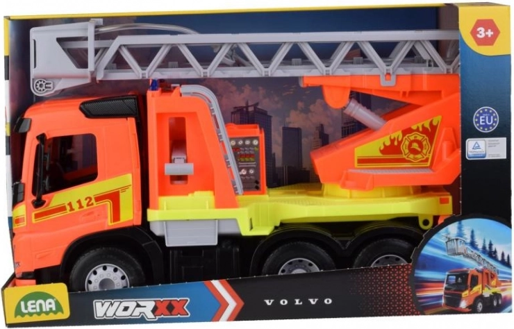 Das Feuerwehrfahrzeug VOLVO von Lena ist eine hervorragende Wahl für Kinder, die actionreiche Rettungsspiele lieben. Dank integriertem Tank und Spritze mit einer Reichweite von bis zu 3 Metern meistern kleine Feuerwehrleute jede „Feuerwehr“-Herausforderung. Die drehbare (270°) und ausziehbare Leiter bis zu einer Länge von 60 cm ermöglicht Rettungen auch „in der Höhe“.