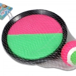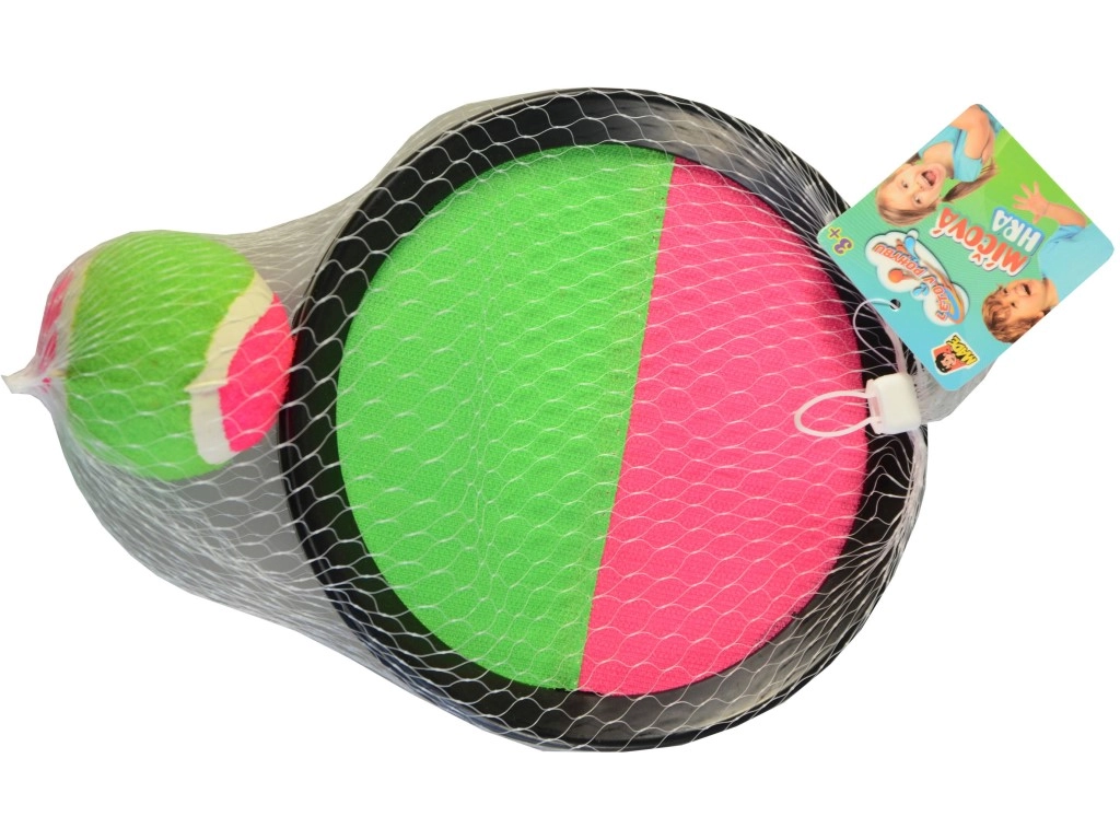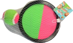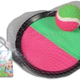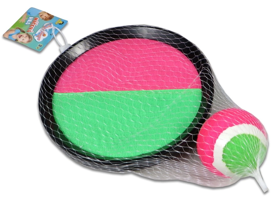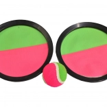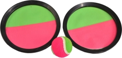 Genießen Sie unterhaltsame Stunden mit dem Catch Ball Spiel im Freien. Dieses Spiel ist sowohl im Sommer am Wasser als auch im Winter an einem schönen Tag draußen großartig. Es enthält zwei Kunststoffscheiben mit Klettverschluss-Oberfläche und einen Ball, der sanft an der Scheibe haftet. Ein Spieler wirft einfach den Ball, und der andere fängt ihn mit der Scheibe.