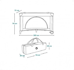 Das Bett ist ideal für kleinere Räume und dank schnellem Faltmechanismus einfach und schnell zu bedienen. Es bietet die Möglichkeit, die Matratze auf zwei Höhenstufen einzustellen, was Flexibilität gewährleistet. Durch den seitlichen Reißverschlussausgang ist der Ein- und Ausstieg für das Kind einfach.
