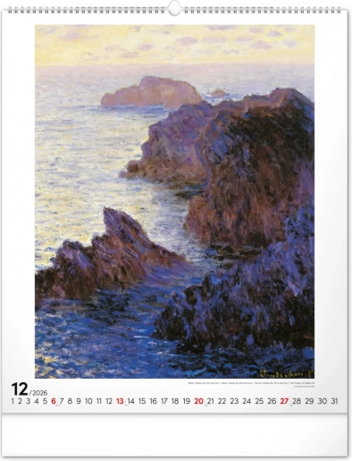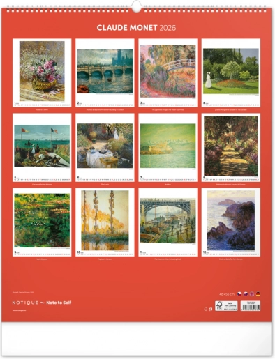 Wenn Sie Claude Monets Werke bewundern, ist dieser Wandkalender genau das Richtige für Sie. Jeden Monat bringt er ein neues Gemälde aus seiner reichen Galerie voller frischer Landschaftsszenen und Figuren.