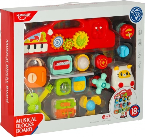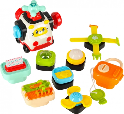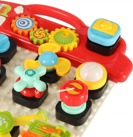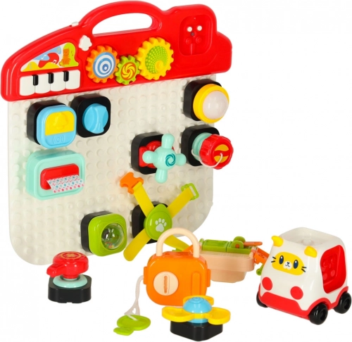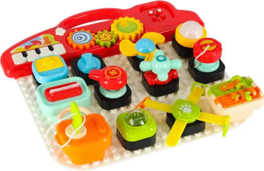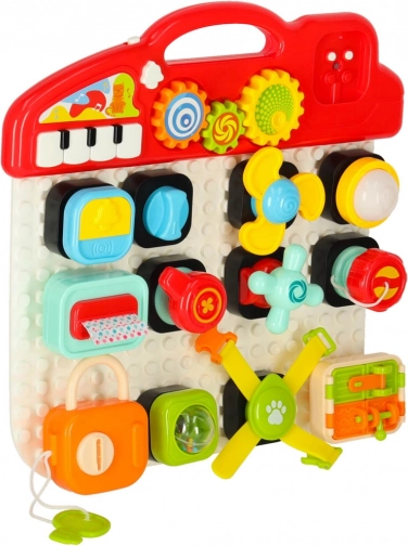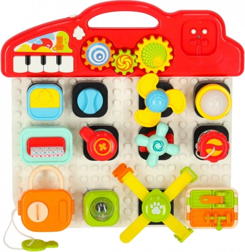 Das interaktive pädagogische sensorische Spielzeug wurde entwickelt, um das Lernen der Kinder durch Spiel zu fördern. Diese manipulative Stecktafel bietet eine Vielzahl interaktiver Elemente: