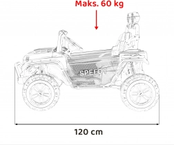 Vier 200-W-Motoren liefern die Kraft für Fahrten im Gelände, sanfte Anfahrten mit Soft Start und zwei Kinder-Geschwindigkeiten sorgen für sicheres und spaßiges Fahren vorwärts und rückwärts.