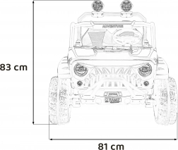 Audio-Panel mit Bluetooth/MP3/USB/AUX, Hupe und Melodien. LED-Frontlichter, beleuchtete Motorhaube und Vorbereitung für einen oberen Lichtbügel unterstreichen den Abenteurer-Look.