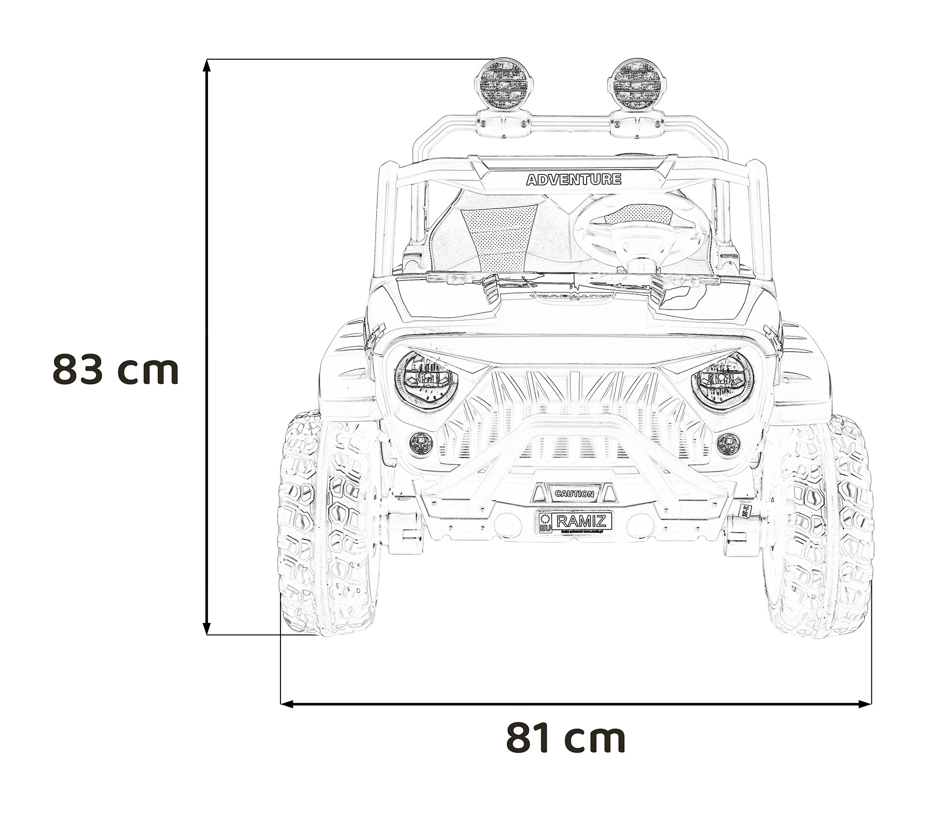 Praktische Details wie Ladezustandsanzeige, geräumiger hinterer Kofferraum 49 × 10 × 16 cm und hohe Bodenfreiheit 19 cm machen das PASSION 4x4 zur idealen Wahl für Outdoor-Spaß. Sanfte Anfahrten mit Soft Start, Vorwärts-/Rückwärtsfahrt und zwei Kinder-Geschwindigkeiten sorgen für ein sicheres und unterhaltsames Erlebnis.