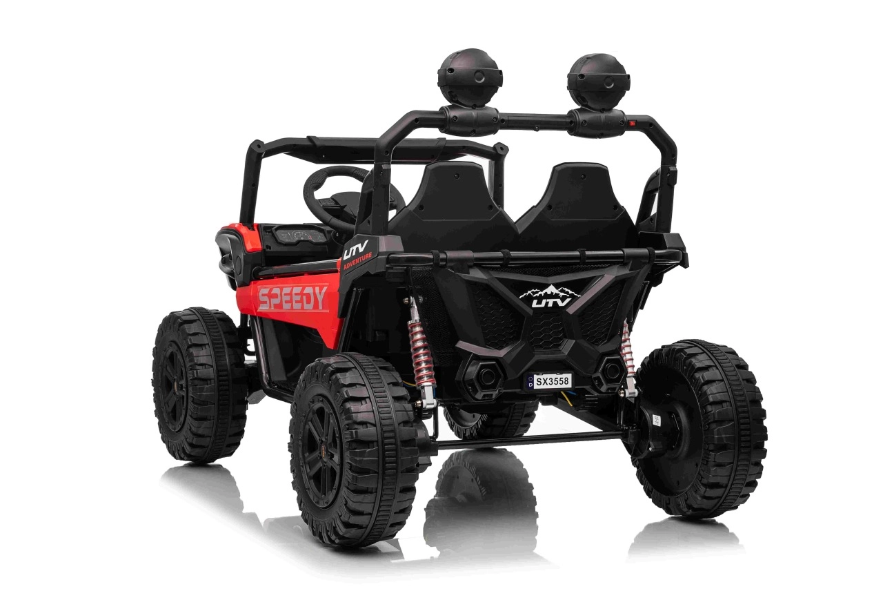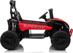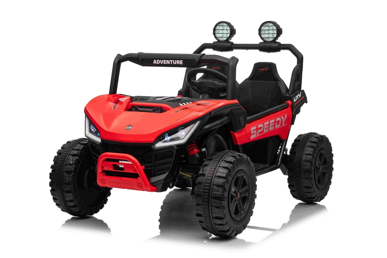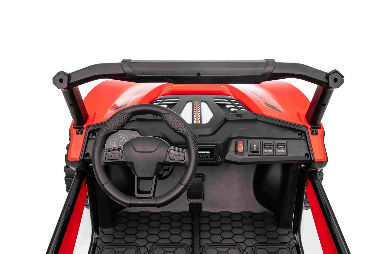 Entdecken Sie den Spaß mit Buggy Speedy 4x4, ausgestattet mit einem starken Motor und einer dualen 12V-Batterie. Dank der EVA-Pianoräder und den einstellbaren hinteren Stoßdämpfern bietet es eine sanfte und komfortable Fahrt.