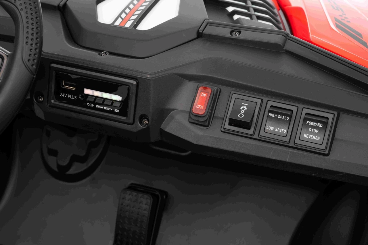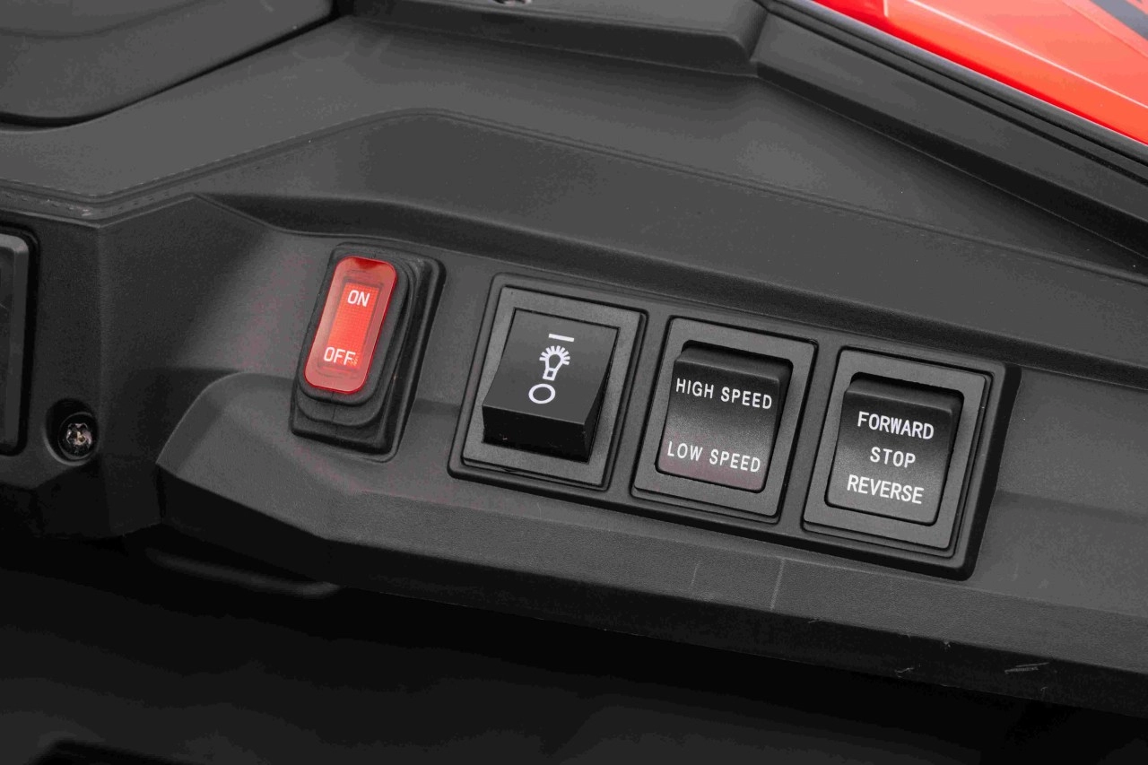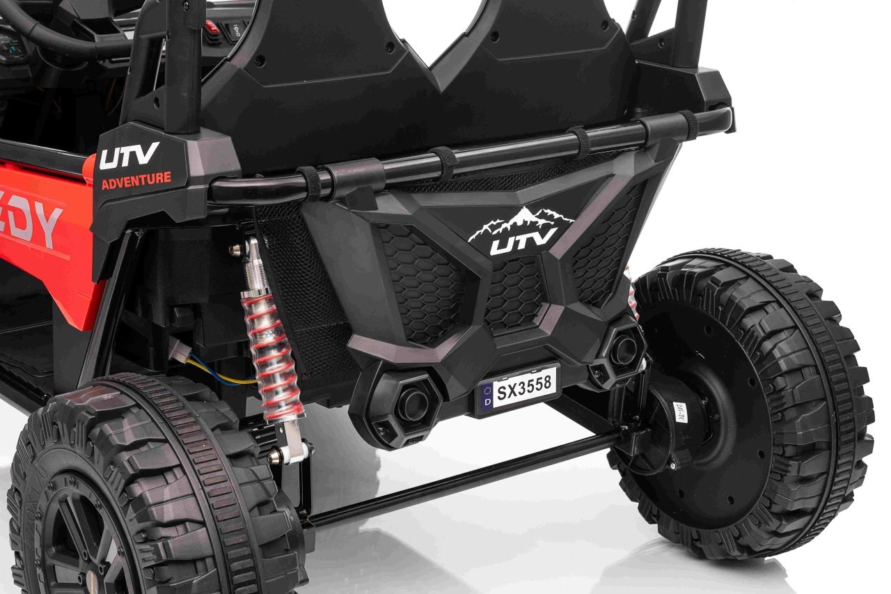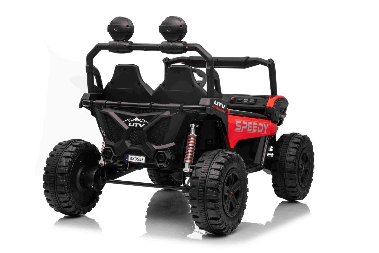 Entdecken Sie den Spaß mit Buggy Speedy 4x4, ausgestattet mit einem starken Motor und einer dualen 12V-Batterie. Dank der EVA-Pianoräder und den einstellbaren hinteren Stoßdämpfern bietet es eine sanfte und komfortable Fahrt.