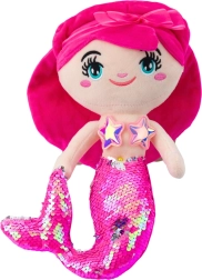 Dieses Spielzeug hat große, gestickte Augen, ein lächelndes Gesicht, rosa Haare, die mit einer Schleife verziert sind, und einen markanten Schwanz, der mit Pailletten bedeckt ist. Die Pailletten wechseln die Farbe von Rosa zu Silber, wenn man darüber streicht, was den Kindern Freude bereitet und den Tastsinn und die Vorstellungskraft anregt.