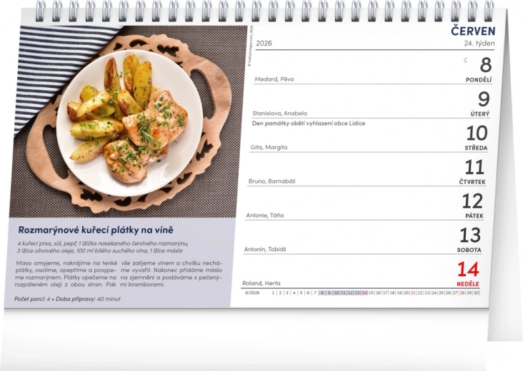 Entdecken Sie Inspiration für Ihre Hausküche mit diesem Tischkalender voller 53 traditioneller Rezepte, die unsere Großmütter ehren. Der Kalender enthält tschechische Namen, Feiertage, Gedenktage und Mondphasen.
