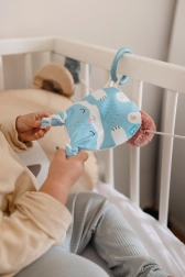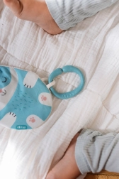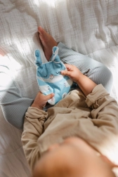 Die Pflege des Spielzeugs ist einfach. Vor der ersten Verwendung empfehlen wir, es ohne Ring zu waschen. Wenn der Ring abgenutzt ist, können Sie ihn leicht durch einen neuen ersetzen. Das Spielzeug nicht bügeln und nicht im Trockner trocknen. Kleine Druckschäden sind normal und werden nicht als Mängel angesehen.