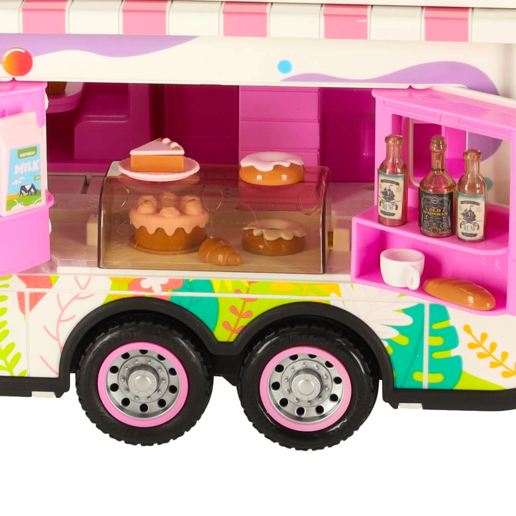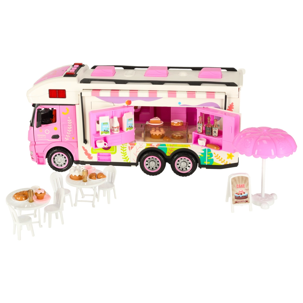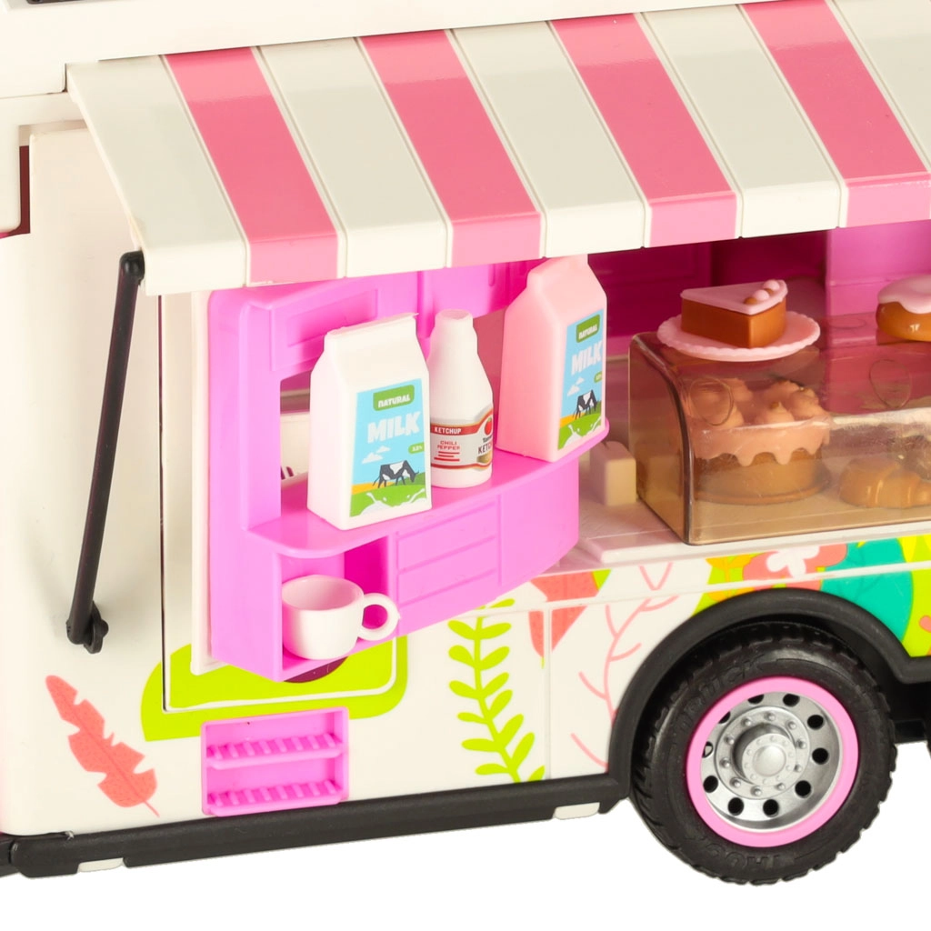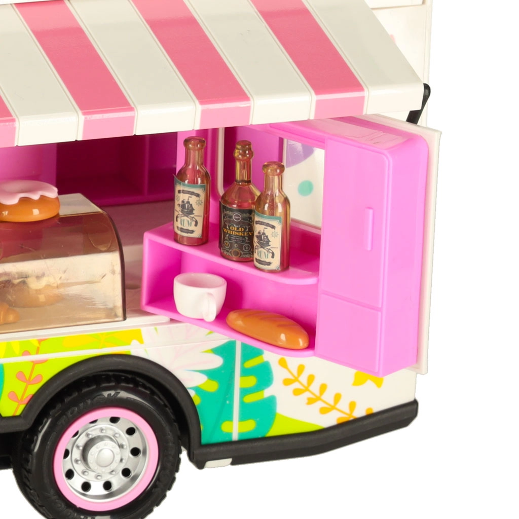 Dieses Set enthält verschiedene Accessoires, die es den Kindern ermöglichen, echtes Camping nachzustellen. Dazu gehören Tisch, Stühle, Mini-Geschirr und Aufkleber, die eine persönliche Note hinzufügen. Die Kinder können auch ein Werbebanner aufstellen und einen Gartenschirm platzieren, was noch mehr Spielmöglichkeiten bietet.