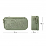 Das Schulmäppchen Etue Menthol ist geräumig mit doppelter Klappe und Innentasche. Das Material ist strapazierfähig und recycelt, und die YKK-Reißverschlüsse bieten eine hervorragende Haltbarkeit. Der Schuhbeutel besteht aus strapazierfähigem, abwaschbarem Material und ist mit robusten Kordeln zum bequemen Tragen auf dem Rücken ausgestattet.
