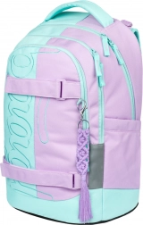 Der Schulrucksack Skate Max Sweet besteht aus recyceltem und wasserdichtem Material, das Sicherheit und Langlebigkeit gewährleistet. Er verfügt über einen abnehmbaren Hüftgurt und eine spezielle Verstärkung aus EVA-Schaum, die seine Form bewahrt. Der verstärkte Griff erhöht die Tragkraft auf bis zu 8 kg. Der Rucksack passt für Kinder mit einer Größe von 155-185 cm, was Schülern ab der 3. Klasse entspricht.