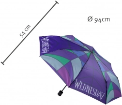 Dieser Regenschirm ist der perfekte Begleiter für alle, die auch bei Regen stilvoll unterwegs sein wollen. Dank seines kompakten Designs ist er leicht transportierbar, was ihn für den täglichen Gebrauch geeignet macht. Die Hülle des Regenschirms mit dem Wednesday-Motiv zieht jedermanns Aufmerksamkeit auf sich. Sie können ihn mühelos in Ihren Rucksack oder Ihre Handtasche verstauen.