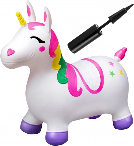 Bringen Sie die magische Welt der Fantasie nach Hause mit dem aufblasbaren springenden Einhorn. Es ist aus sicheren und langlebigen Materialien hergestellt und verfügt über bequeme Griffe für sicheres Springen. Dieses Produkt ist geeignet für Kinder ab 12 Monaten und einer maximalen Belastung von bis zu 45 kg. Dank seines einzigartigen Designs und der breiten Basis mit rutschfesten Füßen bietet es Stabilität und Sicherheit.
