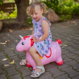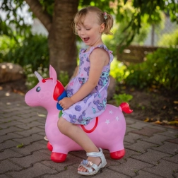 Das Spielzeug ist für Kinder ab 12 Monaten geeignet und trägt bis zu 45 kg. Das richtige Aufpumpen (0,3–0,4 bar) sorgt für ideale Federung beim Hüpfen und Sitzen. Mit der beiliegenden Pumpe ist alles in wenigen Augenblicken einsatzbereit.