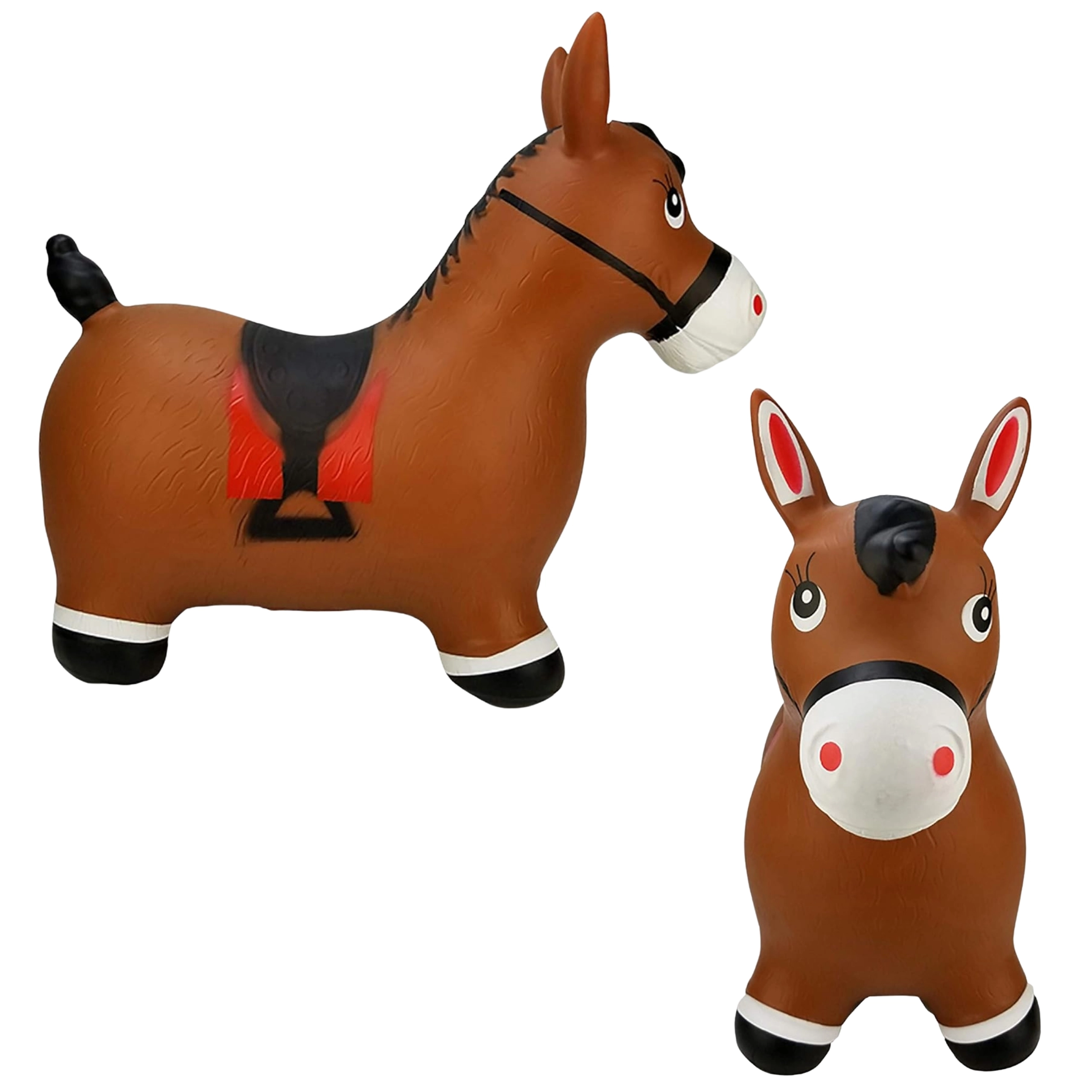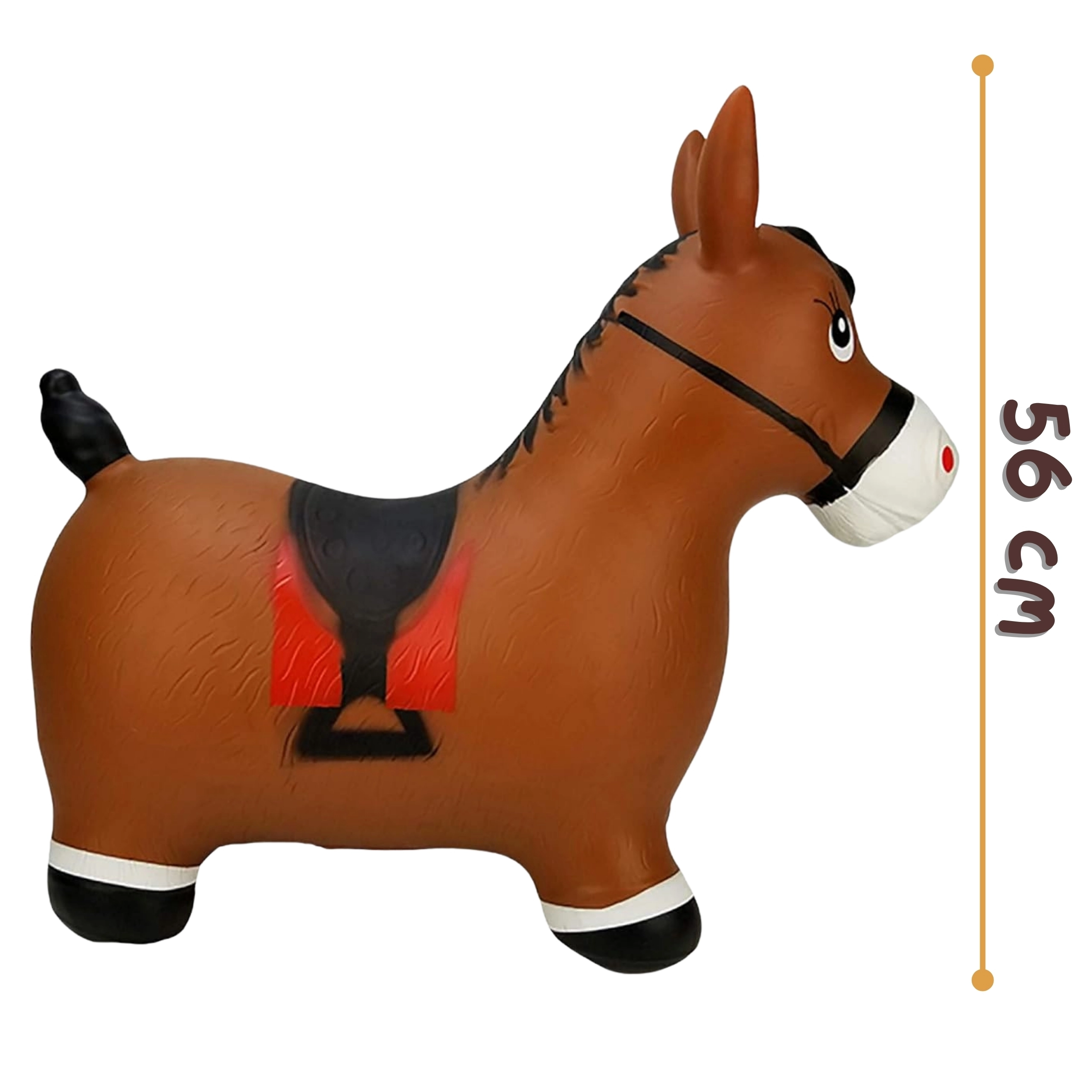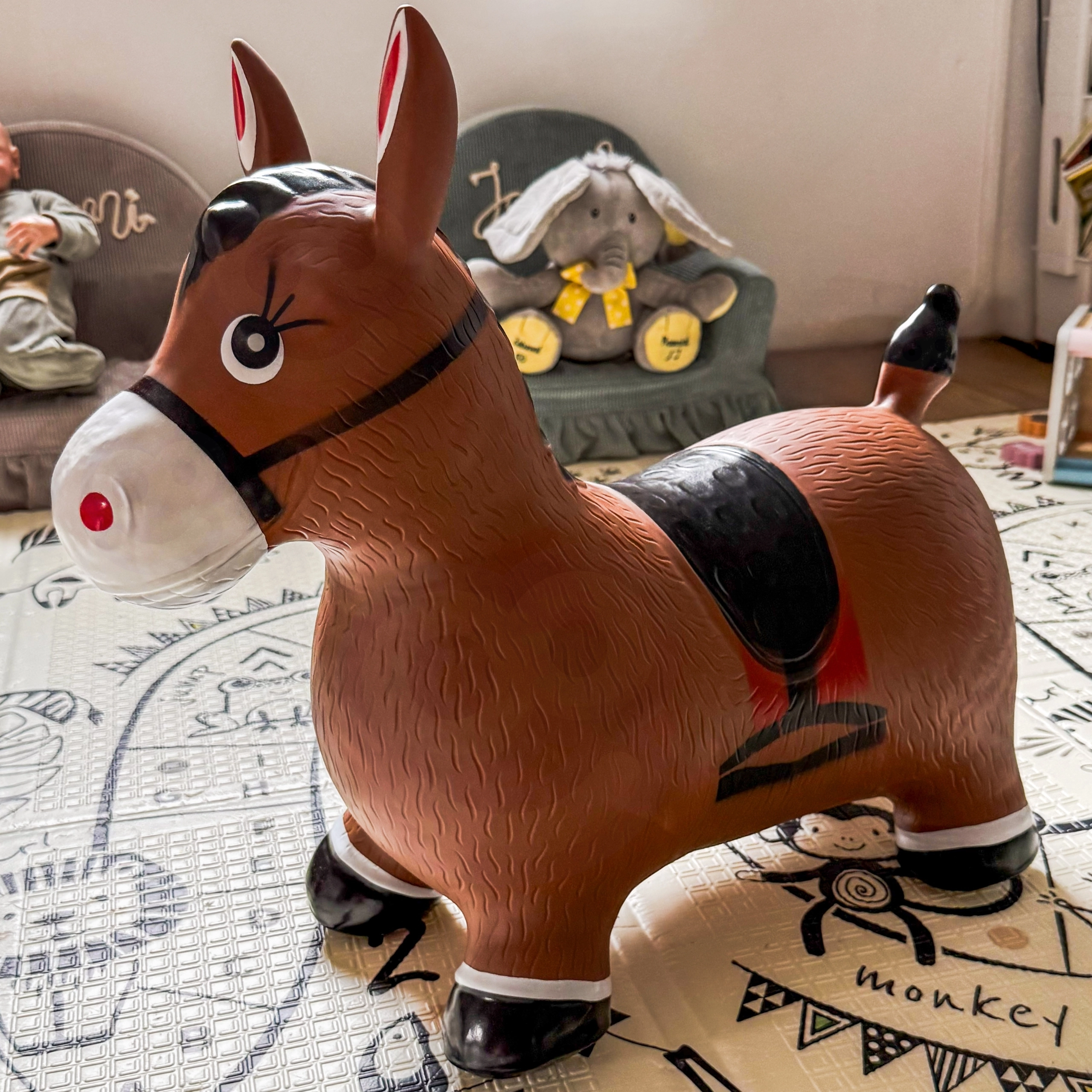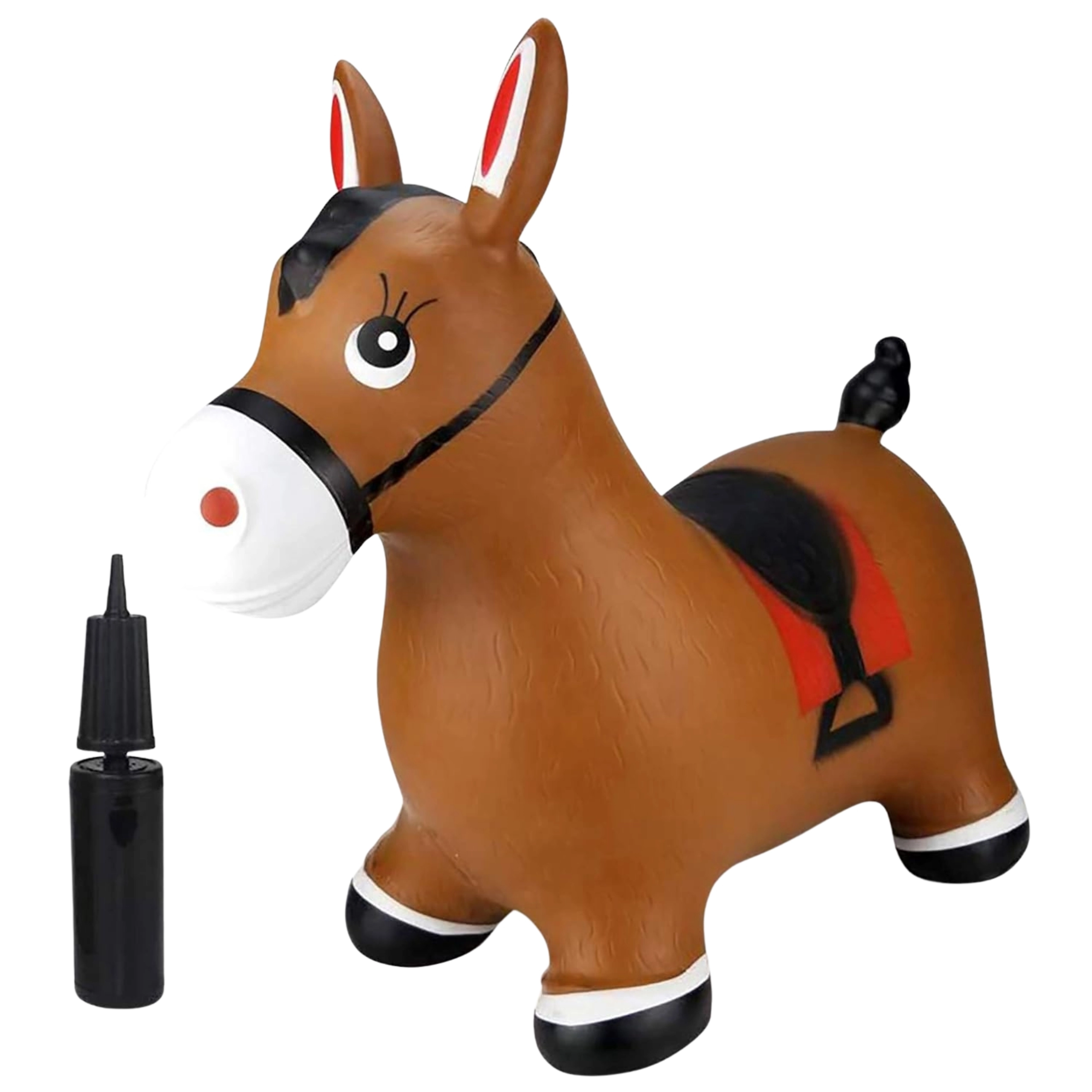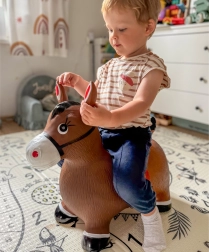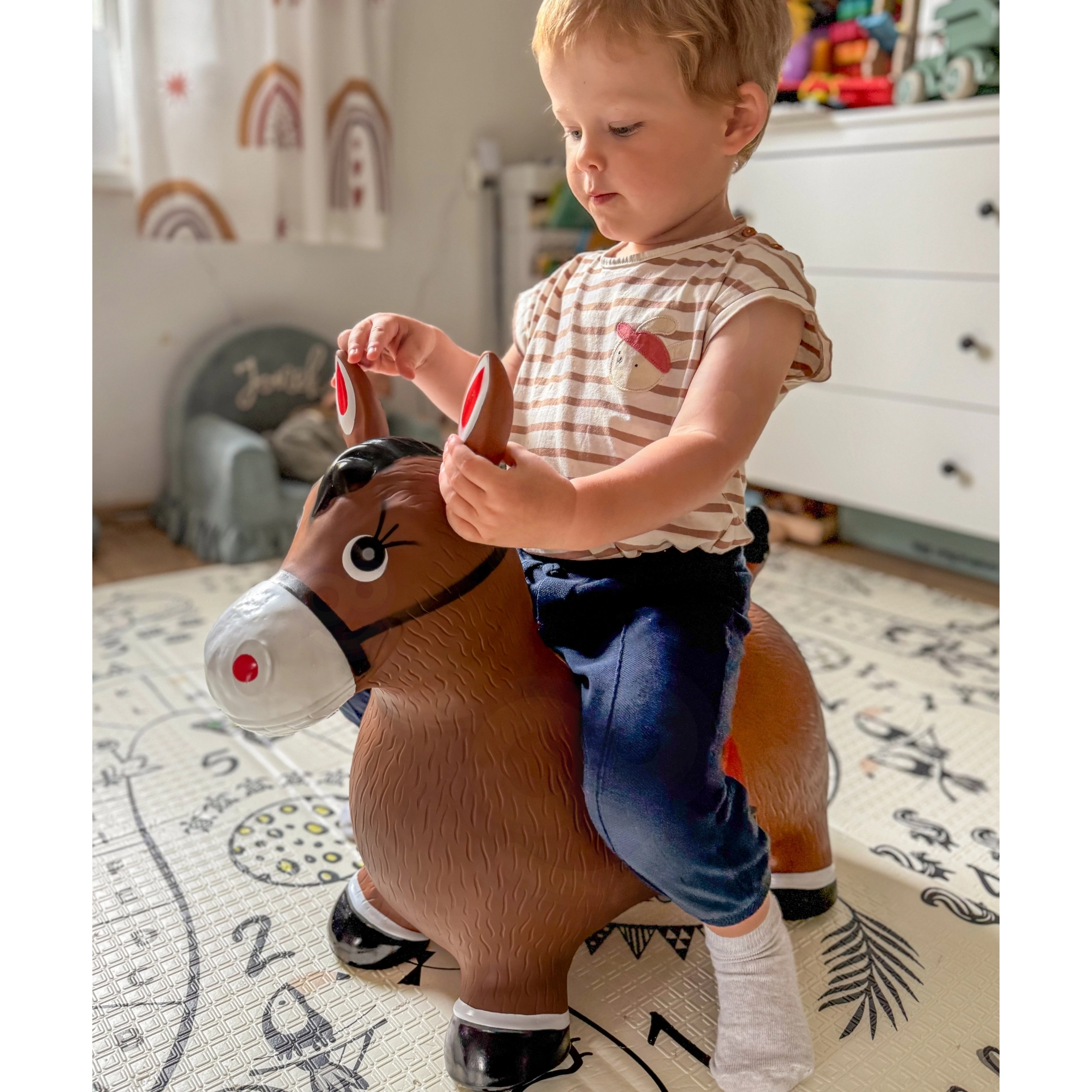 Das klare Design des niedlichen braunen Pferdchens mit Sattel motiviert zum Spielen und regt die Fantasie an. Die maximale Tragkraft beträgt 45 kg und die empfohlenen Fülldrücke 0,3–0,4 bar sorgen für die richtige Elastizität und bequemes Hüpfen. Im Lieferumfang ist eine praktische Pumpe enthalten, sodass der Spaß direkt nach dem Auspacken beginnen kann.