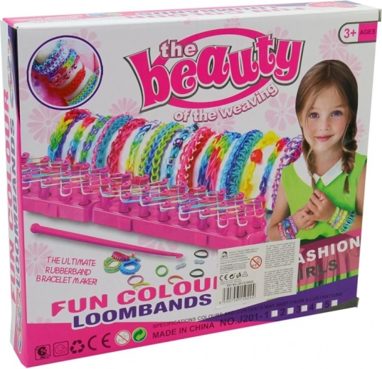 Kreatives Set zur Herstellung von Armbändern mit Gummibändern und Webstuhl, ideal für Kinder. Fördert die Kreativität und Feinmotorik.