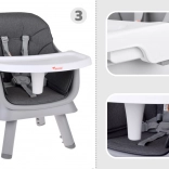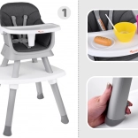 Der multifunktionale Hochstuhl 6in1 ist die ideale Lösung für Eltern, die eine praktische und stilvolle Ausstattung suchen, die sich den wechselnden Bedürfnissen des Kindes anpasst. Vom Hochstuhl für selbstständiges Essen über einen Kinderhocker bis hin zu einer vollständigen Tischkombination für Spiel und Lernen.