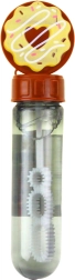 Seifenblasen Donut ist ein Spielzeug, das unendlichen Spaß bringt und Kinder zu Aktivität an der frischen Luft motiviert. Der farbenfrohe Verschluss in Form eines Donuts enthält eine kleine Öse, durch die eine Schnur gezogen werden kann, sodass das Kind den Seifenblasen immer bei sich haben kann.