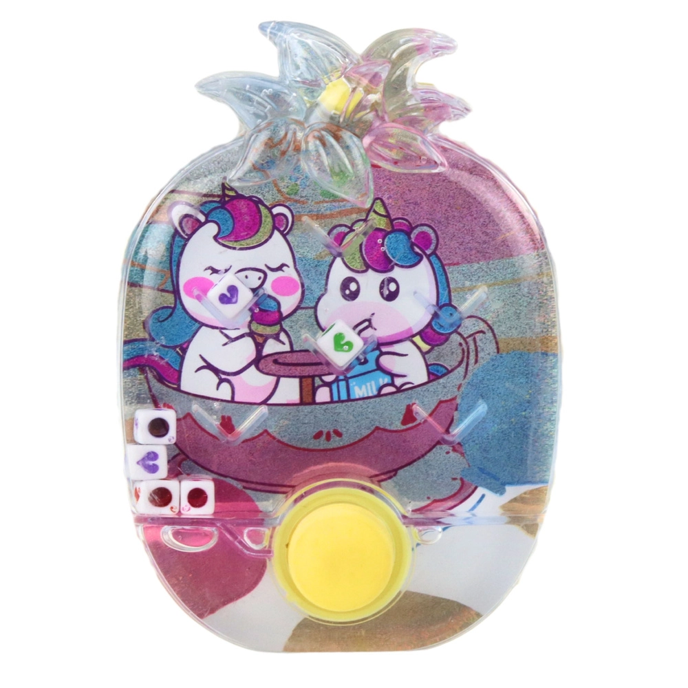 Dieses Wasser-Spiel mit dem Motiv der zauberhaften Einhörner ist ein klassisches Spielzeug, das seit vielen Jahren Kindern unterschiedlichen Alters Freude bringt. Dank der kompakten Maße und des einfachen Mechanismus ideal für Reisen, die Schule oder Spaziergänge. Das Spiel besteht darin, einen Knopf zu drücken, der bunte Ringe oder Kugeln in einem durchsichtigen Behälter voller Flüssigkeit in Bewegung setzt. Ziel ist es, diese Elemente auf Stifte oder bestimmte Stellen zu platzieren.