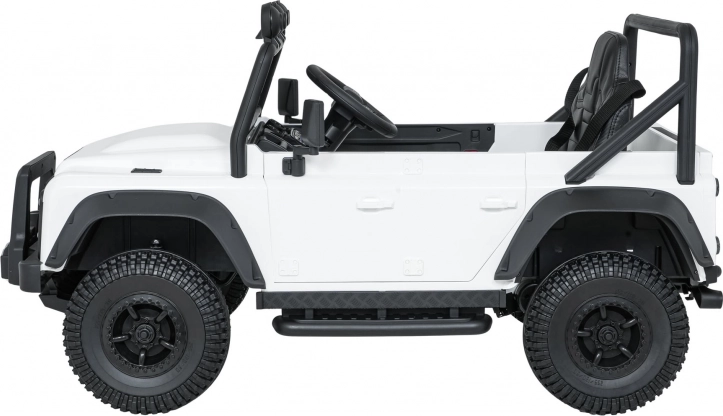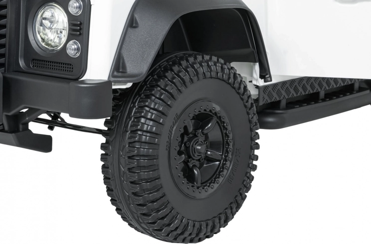 Das robuste Offroad-Design, inspiriert vom ikonischen LAND ROVER DEFENDER, begeistert kleine Fahrer und Eltern. Zwei leistungsstarke Motoren 2x100 W in Kombination mit dem 24V-7Ah-Akku gewährleisten eine gleichmäßige Fahrt, die Funktion Soft Start (sanftes Anfahren) und zwei Geschwindigkeiten tragen zu sicherem Handling bei. EVA-Räder 25×9 cm und vordere sowie hintere Federung bieten Komfort auch auf unebenem Untergrund.