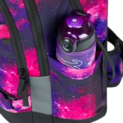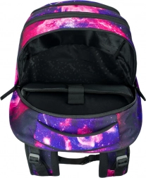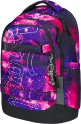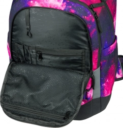 Rucksack Skate Max Galaxy ist eine leichte Lösung mit einem Gewicht von nur 1150 g und bietet ein verstellbares Rückensystem, das an verschiedene Größen angepasst werden kann. Ideal für Schüler mit einer Körpergröße von 155 bis 185 cm. Hergestellt aus recyceltem, wasserdichtem Material mit reflektierenden Elementen und einem abnehmbaren Hüftgurt. Der Rucksack verfügt über einen dreikammerigen Organizer und eine spezielle Laptoptasche, ergänzt durch hochwertige YKK-Reißverschlüsse und einen stylischen Anhänger.