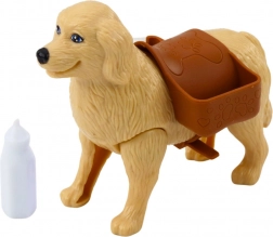 Im Mittelpunkt des Spiels steht ein großer Hund mit einer Tasche auf dem Rücken, in der drei kleine Welpen verborgen sind. Mit den mitgelieferten Zubehörteilen wie einer Fütterungsflasche und einem Knochen kann sich das Kind in die Rolle eines fürsorglichen Tierpflegers einfühlen, sich um ihre Bedürfnisse und Sicherheit kümmern. Alle Teile sind aus langlebigen und sicheren Materialien gefertigt, die für kleine Hände geeignet sind.