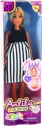Puppe Anlily Schwanger in Schwarz-Weiß gestreiftem Kleid mit Baby