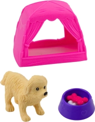 Das Set beinhaltet einen kleinen Hund - den treuen Begleiter der Puppe, der Pflege, Futter und einen Ruheplatz benötigt. Speziell für ihn gibt es ein rosa Zelt, das als Hütte dient - ideal zum Ausruhen, Spielen oder Schlafen. Im Set ist auch ein Napf mit Knochen und Leckerli für realistisches Spiel enthalten.
