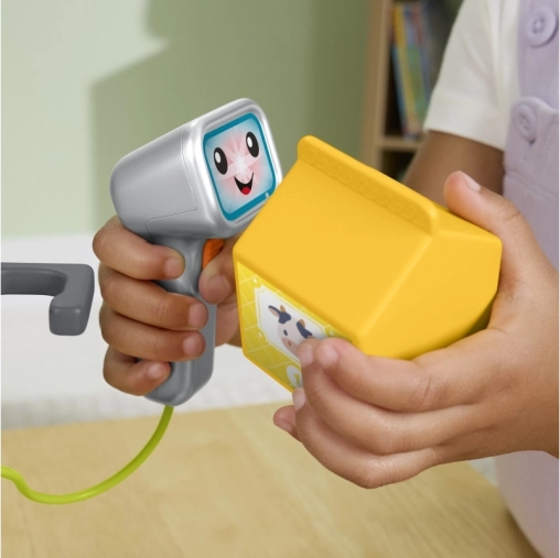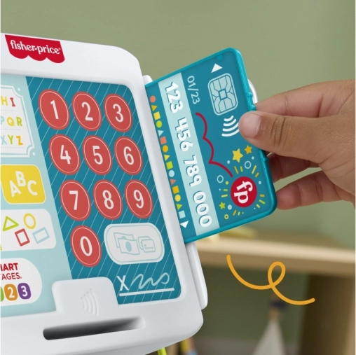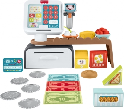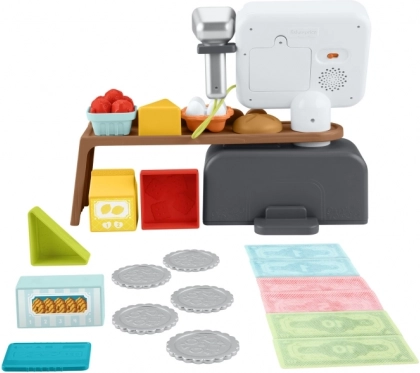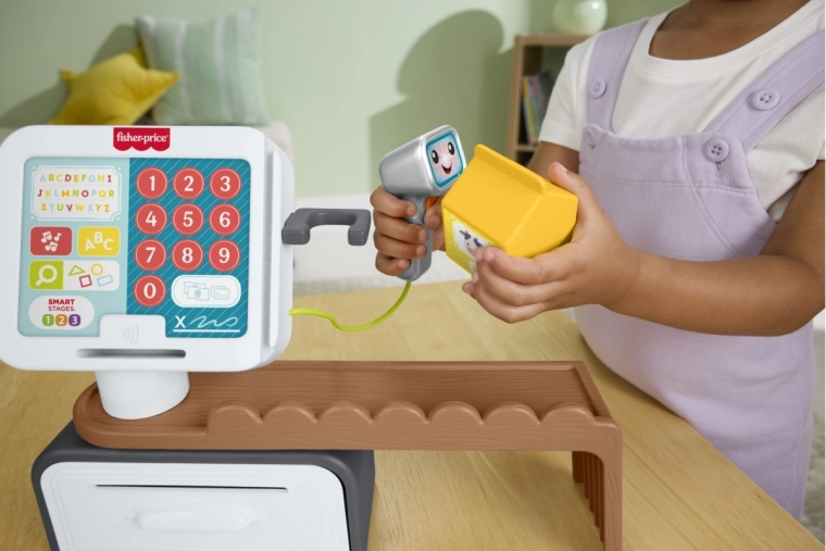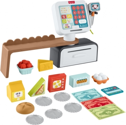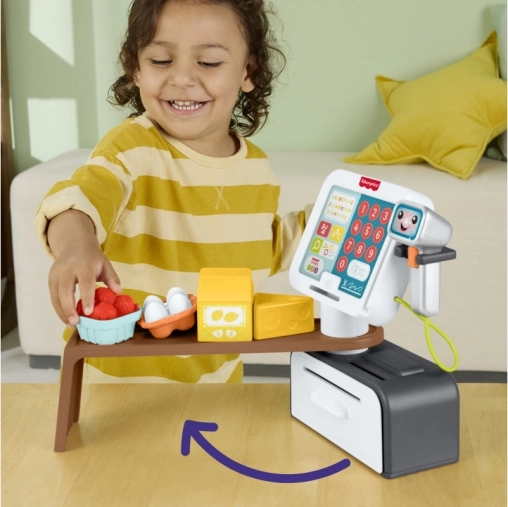 Die sprechende Fisher‑Price Kasse macht aus jedem Kaufmannsladen ein spielerisches Lernerlebnis. Kinder können Lebensmittel scannen, große bunte Tasten drücken, Geldscheine und Münzen in die Schublade legen und mit der Karte bezahlen. Umfangreiches Audi-Feedback mit mehr als 150 Geräuschen und Sätzen unterstützt natürliches Lernen und den Wortschatzaufbau.