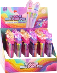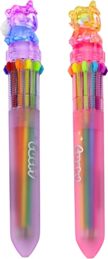 Der Einhorn-Mehrfarbenstift enthält einen automatischen Farbwahlmechanismus - einfach die Taste an der Seite drücken und die gewünschte Farbe wählen. Der Stiftkörper ist mit einem regenbogenfarbenen Effekt und einer transparenten Einhornverzierung oben verziert, die Aufmerksamkeit erregt und den Stift zu einem beliebten Accessoire jedes Kindes macht.