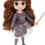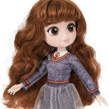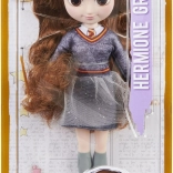 Die Hermine-Puppe hat ein detailreich gestaltetes Gesicht und weiches, langes braunes Haar, das der Figur das vertraute Aussehen aus der Filmreihe verleiht.
