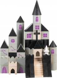 Der Holzbaukasten Geisterschloss bringt ein Stück Magie und Geheimnis in die Kinderwelt. Jedes der 97 Teile ist mit Druck versehen und hat verschiedene Formen und Größen, was endlose Möglichkeiten beim Bau des Schlosses ermöglicht.