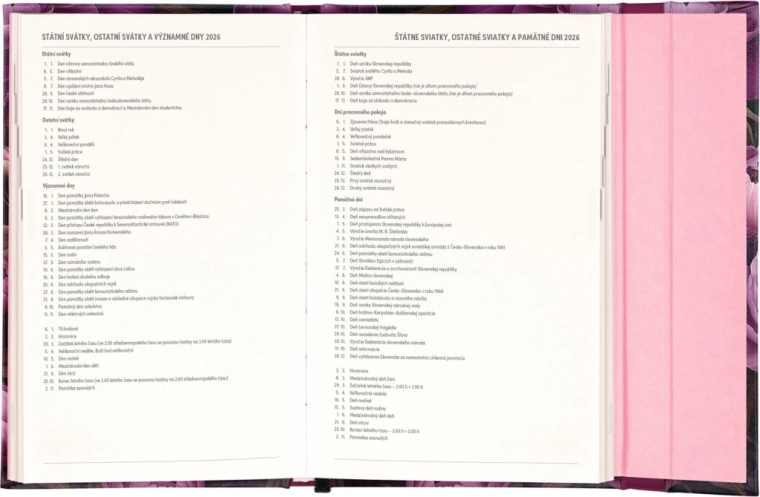 Der Notique Lila Blumen Planer ist nicht nur ästhetisch ansprechend, sondern auch hochfunktional. Er enthält monatliche Übersichten, die ideal für die Planung von Urlauben oder Ferien sind. Außerdem enthält er eine Liste von tschechischen und slowakischen Feiertagen und Namenstagen, was Ihnen hilft, stets vorbereitet zu sein.