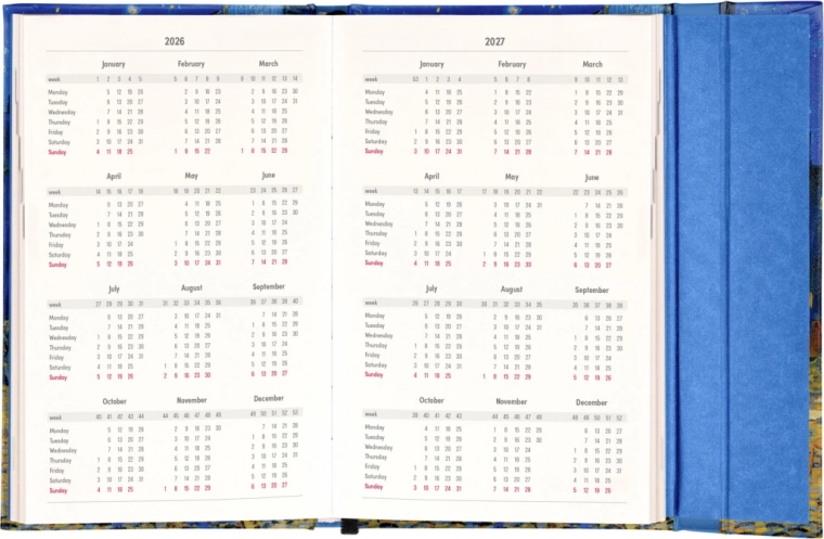 - Spaltenlayout der Wochen mit ausreichend Platz für Ihre Notizen.