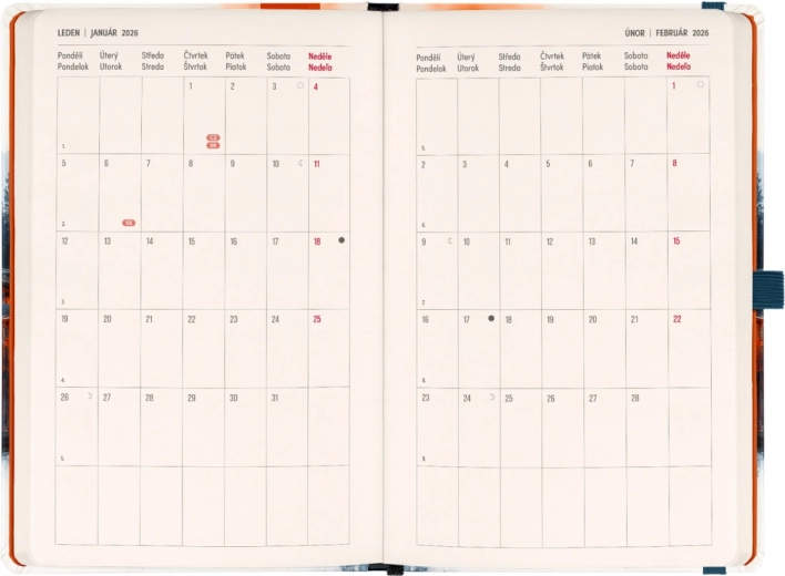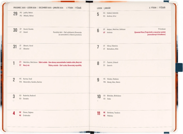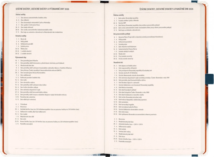 Zwei Welten in einem Produkt. Suchen Sie die perfekte Kombination aus Planen und Notizen machen? Das Planbuch bietet das Beste aus beiden Welten mit Feiertagen aus Tschechien und der Slowakei sowie linierten Seiten für Notizen.