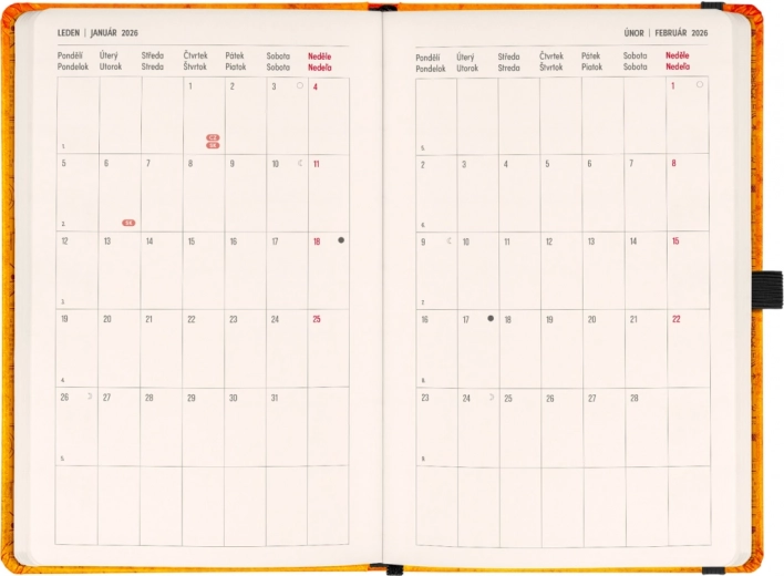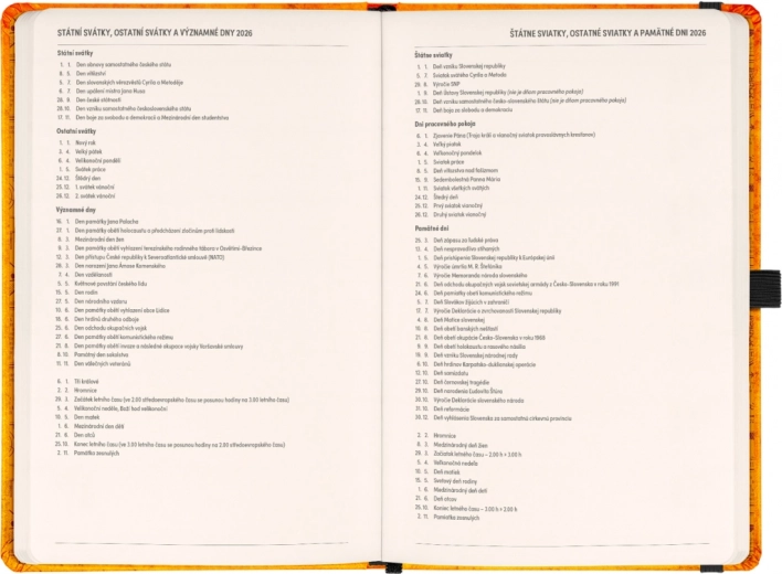 - Zweiwöchentlicher horizontaler Kalender mit deutschen und slowakischen Feiertagen für einfache Planung.