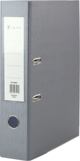 Der Ordner ist mit einem metallischen Hebelmechanismus ausgestattet, der das Einlegen und Entnehmen von Dokumenten erleichtert. Außerdem hat er ein Loch im Rücken, das das Herausziehen aus dem Regal erleichtert, sowie ein Beschriftungsetikett für die eigene Inhaltskennzeichnung.