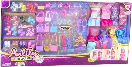 Das große Modenset von Anlily enthält Kleider, Schuhe und Accessoires für kreatives und stilvolles Puppenspiel.