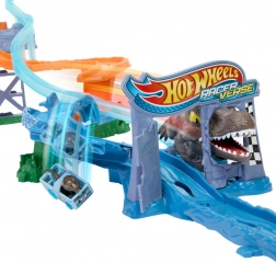 Tauchen Sie ein in die Welt von Jurassic World mit dem Hot Wheels RacerVerse Meeres-Dino-Rennen, wo der Velociraptor seine Kräfte mit dem Spinosaurus auf der Rennstrecke misst. Die vorgestellten Rennautos enthalten ein einzigartiges RacerVerse Velociraptor-Fahrzeug. Begeben Sie sich auf aufregende Rennen und finden Sie heraus, welches der vielen möglichen Ergebnisse Sie diesmal erwartet!